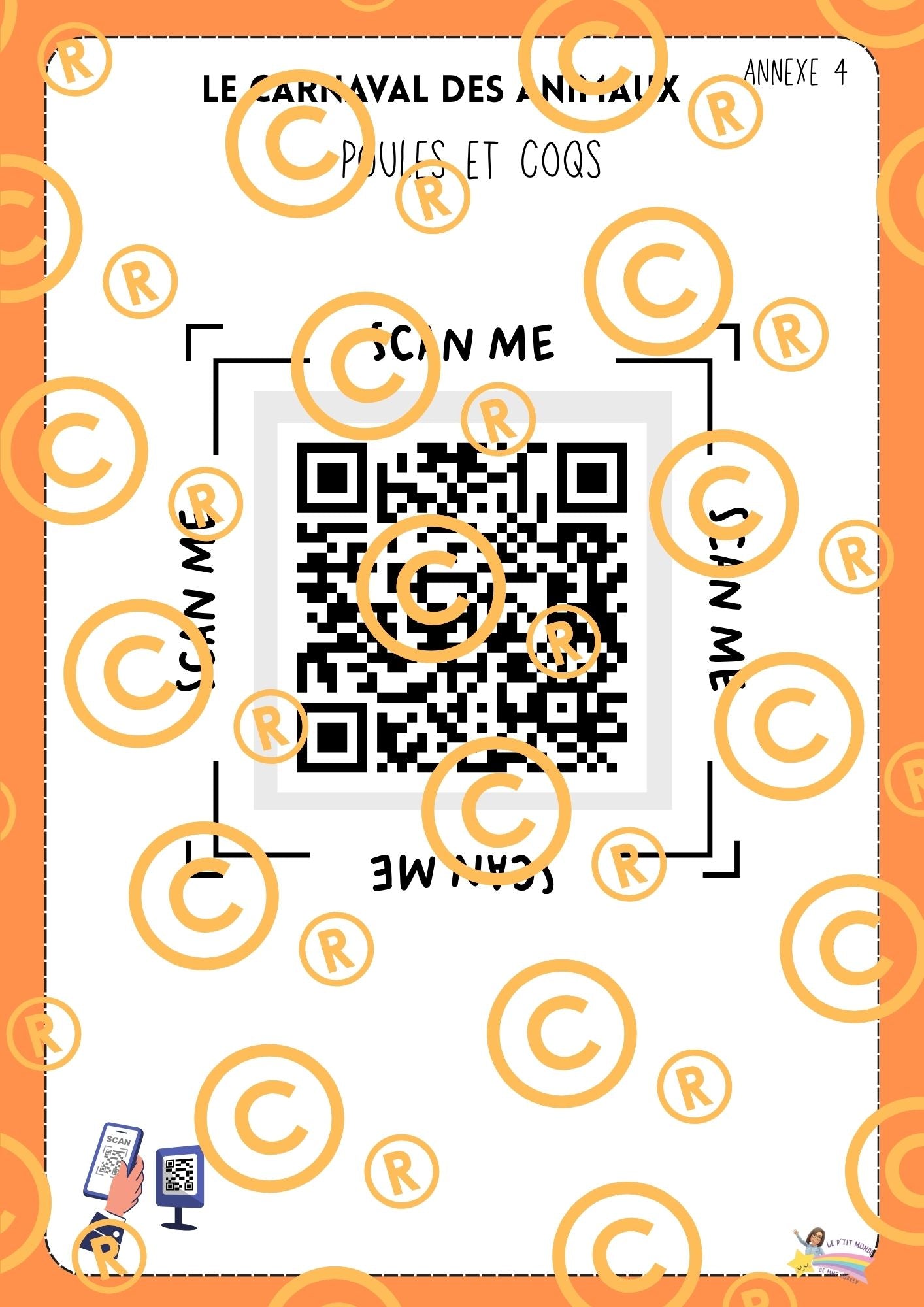 • Les 15 textes de narration correspondant aux quinze mouvements de l’œuvre, avec une version illustrée pour chaque extrait musical, accompagnée de son QR-code, de l’animal associé et d’une mise en image visuelle adaptée aux enfants.