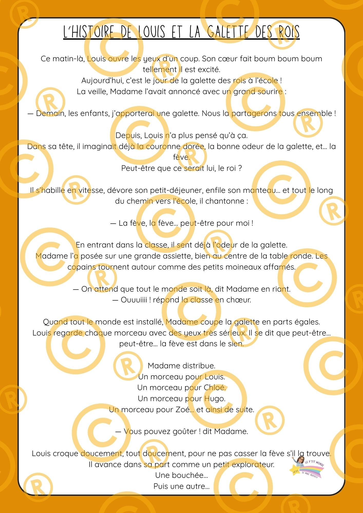 • Une histoire illustrée On suit un petit garçon qui fête la galette à l’école… Un récit doux, vivant et idéal pour travailler la compréhension.