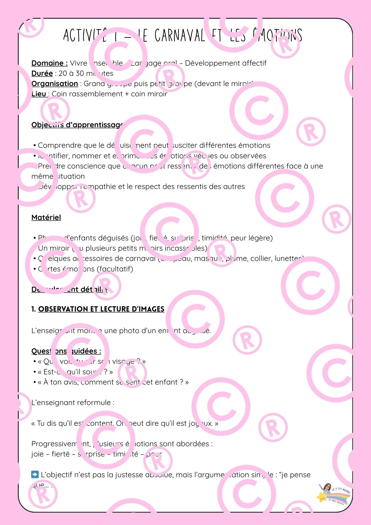Activité 1 — Carnaval & émotions • Ressentis, expression, vocabulaire des émotions