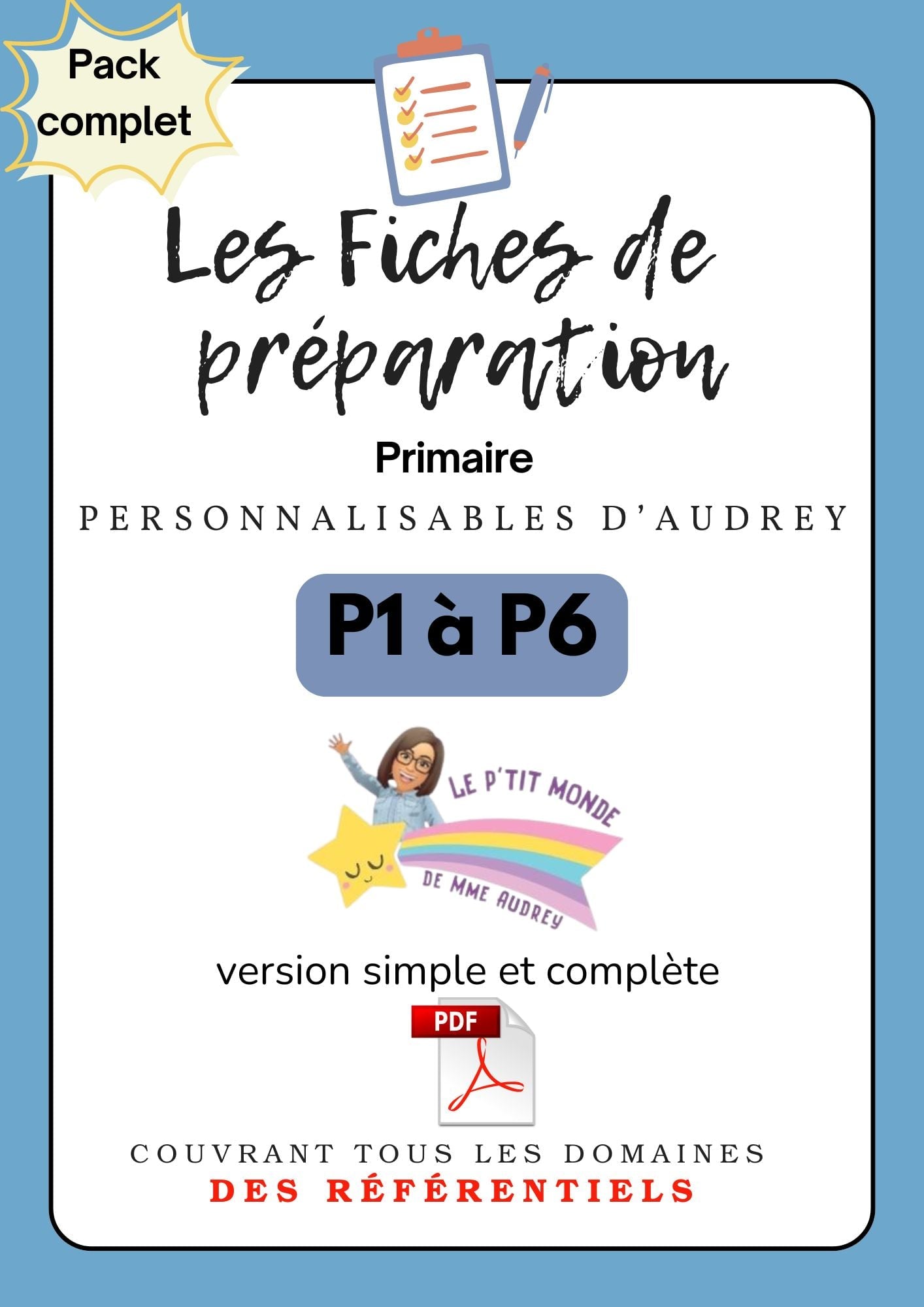 Prépas personnalisables : PRIMAIRES: Pack complet: P1 à P6 : PDF (version simple + version complète)en lien avec le Référentiels.